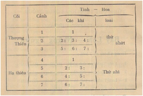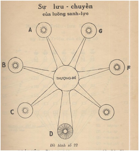 [[7]] Điểm Linh-Quang của đức Thượng-Đế phát-sinh tại cơi thứ nhứt và ngự tại cơi thứ nh́ lấy hiệu là Chơn-Thần (Monade). Chơn-Thần xuống thấp không được v́ nó quá thanh, nên mới phân thân xuống cơi dưới, lấy danh hiệu là chơn-nhơn (égo). Chơn-nhơn cũng thanh, nên xuống cơi dưới không được, mới cho tia sáng đi xuống trần, lấy danh-hiệu là phàm-nhơn (đoạn nầy sẽ giải về sau).